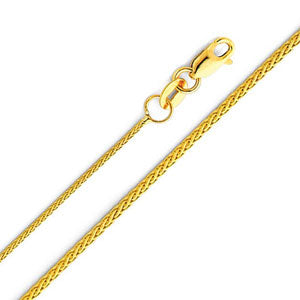 14K Yellow Gold 1.0mm Braided Square Wheat Chain Necklace with Lobster Claw