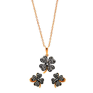 925 Sterling Silver Black Rhodium & Gold Plated Clear Miring & Necklace