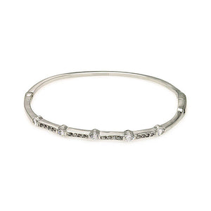 Brass Rhodium Plated Clear Cubic Zirconia Heart Link Bracelet