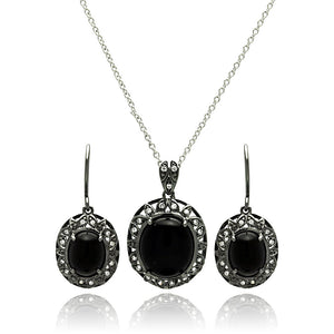 Brass Black Rhodium Plated Oval Disk Multiple Color Cubic Zirconia Necklace & Earring Set