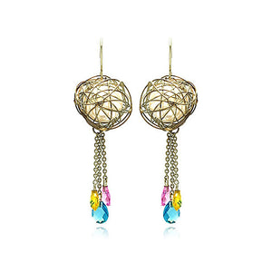 Brass Multiple Strand Multiple Color Cubic Zirconia Dangling Earring