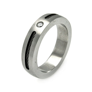 Men's Stainless Steel Black Rhodium Plated Slim Padre Nuestro Ring