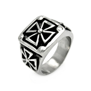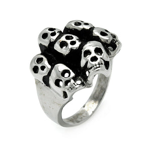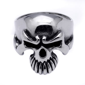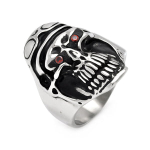 Men's Stainless Steel Pilot Skull Head Red Cubic Zirconia Ring