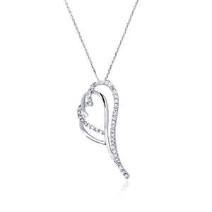 Rhodium Plated Brass Clear Cubic Zirconia Teardrop Wave Setting Pendant Necklace