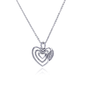 Rhodium Plated Brass Clear Cubic Zirconia Triple Hearts Pendant Necklace