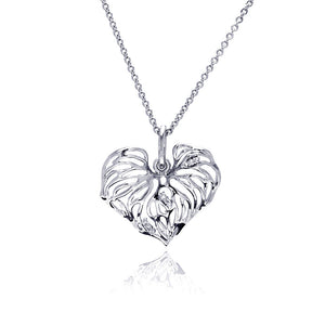 Rhodium Plated Brass Clear Cubic Zirconia Cutout Heart Pendant Necklace