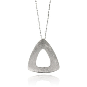 Rhodium Plated Brass Matte Finish Open Triangle Pendant Necklace