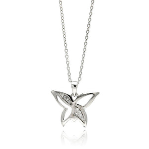 Rhodium Plated Brass Open Butterfly Clear Cubic Zirconia Pendant Necklace