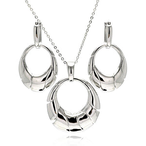 Rhodium Plated Brass High Polish Open Oval Cresent Leverback Earring & Necklace Set
