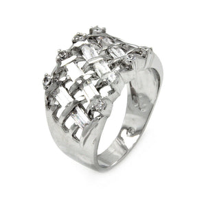 Rhodium Plated Brass Net Clear Cubic Zirconia Cigar Band Ring