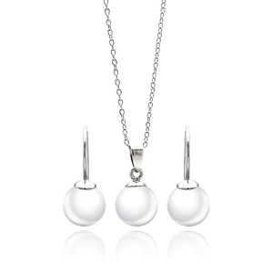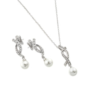 Pearl Cubic Zirconia CZ .925 Sterling Silver Necklace Pendant Earrings Jewelry Set 567-sts00458
