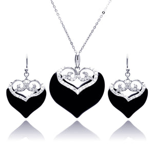Onyx Cubic Zirconia CZ .925 Sterling Silver Heart Necklace Pendant Earrings Jewelry Set 567-bgs00219