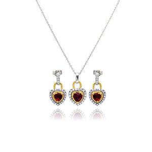 Red Ruby CZ .925 Sterling Silver Heart Necklace Pendant Earrings Jewelry Set 18 Inch