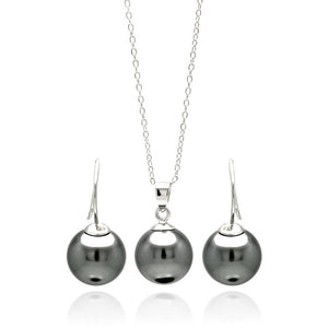 Pearl Black Onyx Cubic Zirconia CZ .925 Sterling Silver Necklace Pendant Earrings Jewelry Set