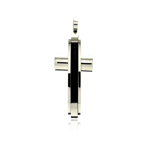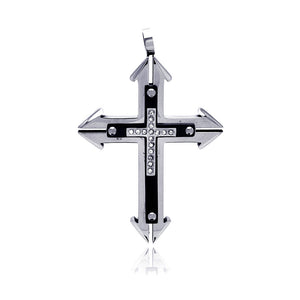 Stainless Steel Black Rhodium Plated Two Tone Cross Charm Pendant