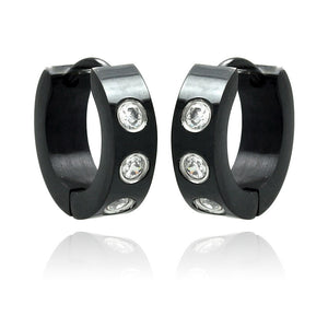 Stainless Steel Black Rhodium Clear Cubic Zirconia Hoop Earring