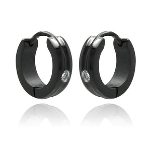 Stainless Steel Black Rhodium Plated Single Clear Cubic Zirconia Hoop Earring