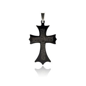 Stainless Steel Black Rhodium Plated Cross Prayer Charm Pendant
