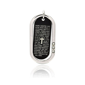 Stainless Steel Black Rhodium Plated Two Tone Prayer Dog Tag Clear Cubic Zirconia Charm Pendant