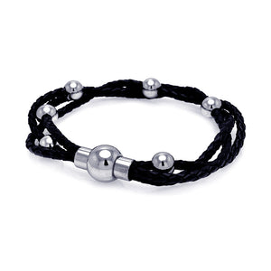 Stainless Steel Multiple Leather Strand & Bead Bangle Lock Bracelet
