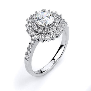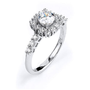 Sterling Silver Rhodium Plated and 6mm round Cubic Zirconia center stone Double Halo Engagement Ring