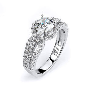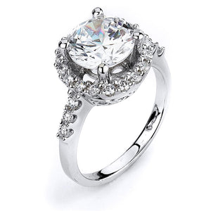 Sterling Silver Rhodium Plated and 10mm round Cubic Zirconia center stone Halo Engagement Ring