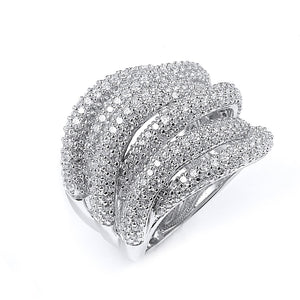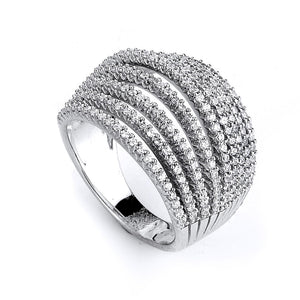 Sterling Silver Rhodium Plated and 5 rows of Cubic Zirconia Ring