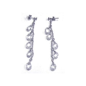 .925 Sterling Silver Rhodium Plated Open Teardrop Cubic Zirconia Dangling Stud Earring