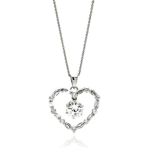 .925 Sterling Silver Rhodium Plated Open Heart Cubic Zirconia Dangling Pendant