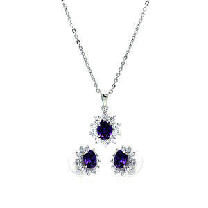 .925 Sterling Silver Rhodium Plated Red Ruby Flower CZ Jewelry Earring Necklace Set