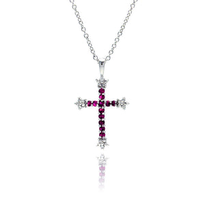 .925 Sterling Silver Ruby Cubic Zirconia Cross Pendant Necklace 18 Inches